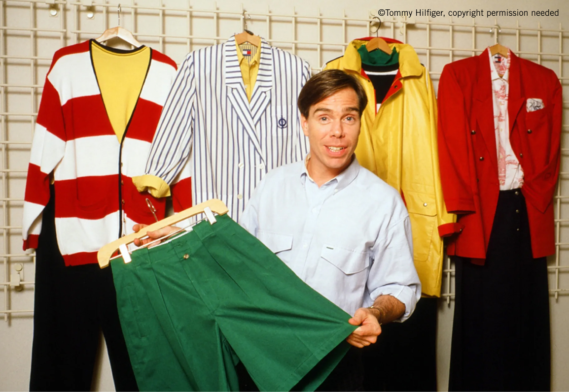The launch of TOMMY JEANS, a younger and sportier offshoot of the brand. The first line mixed denim and activewear, and was designed by Tommy and Andy’s sister, Ginny Hilfiger.