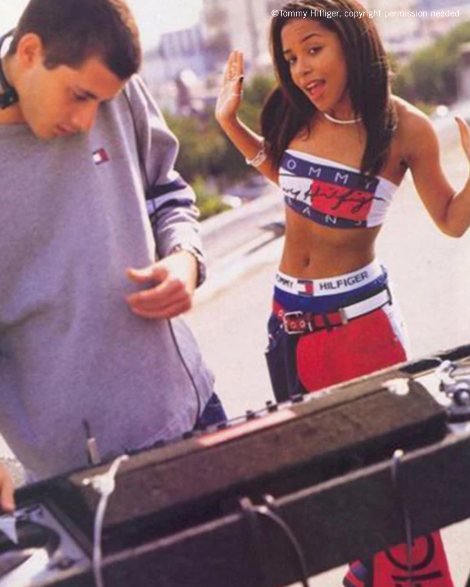 TOMMY JEANS launches its “In the Jeans” campaign featuring Aaliyah, Mark Ronson, Kidada Jones and Quincy Jones III. Aaliyah became the inspiration for the women’s collection in her iconic look of the bandeau top, baggy pants and exposed boxers.