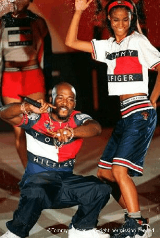 Breakthrough moments. Grand Puba, rapper in the legendary hip-hop collective Brand Nubian namechecks Tommy Hilfiger on Mary J. Blige’s track, ‘What’s the 411?’ and his song ‘360 (What Goes Around)’. He shouts out the clothes he was wearing at that time, lighting up the streets with the Hilfiger name.