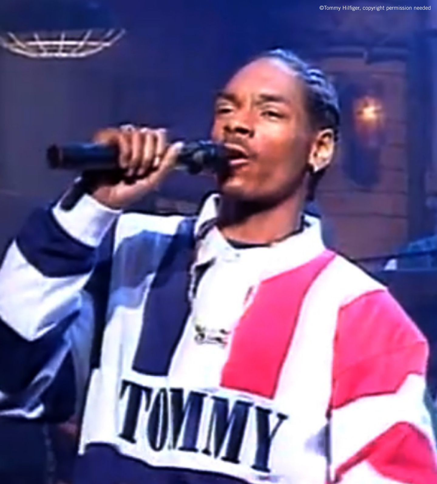 Major players continue to put Tommy Hilfiger on the radar of hip-hop culture. Snoop Dogg performs on Saturday Night Live wearing a red, white and blue striped rugby shirt with ‘TOMMY’ across the chest. Overnight TOMMY HILFIGER became the hottest brand in the country. Stores sold-out within a day, instantly putting Tommy on the map in the hip-hop world.