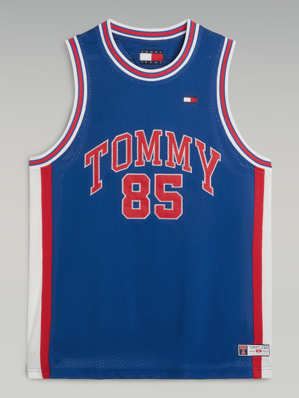 Echoing classic uniform jerseys but slam-dunking with the spirit of modern-day sports, this athletic mesh top is boldly versatile.