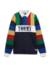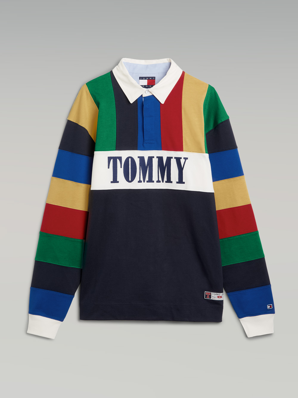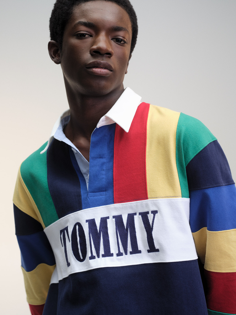 An iconic rugby in TOMMY HILFIGER's signature red, white and blue with yellow, black and green from the union of continents in the sporting world.