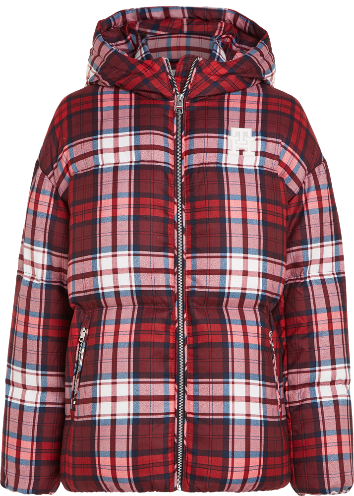 A remake of Tommy's original ‘90s puffer in red, white and blue tartan remix.