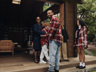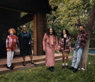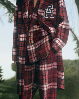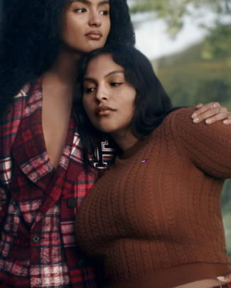 Paloma Elsesser along with her family and friends head for the great outdoors in the rich, autumnal tones of Fall 23. Multi-talented, multicultural and self-made, the family cozy up in bold and warm tartans on a cabin weekend. The chilly essentials are a tribute to Tommy Hilfiger's continued history in classic tartan, originally created and listed on the Scottish Register of Tartans in 2000. This season's collection features two new patterns based on the original colors and layout but with contemporary updates in red and blue.